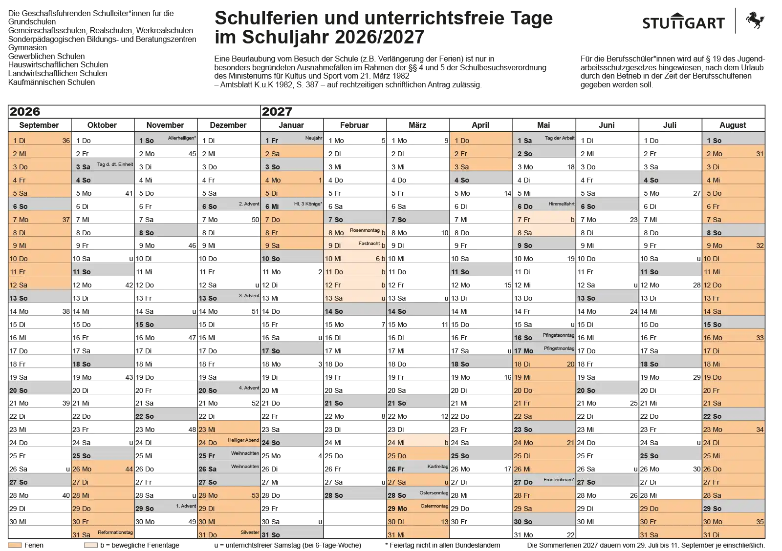 Hier der offizielle Schulferienkalender 2025/26 für Baden-Württemberg
